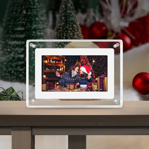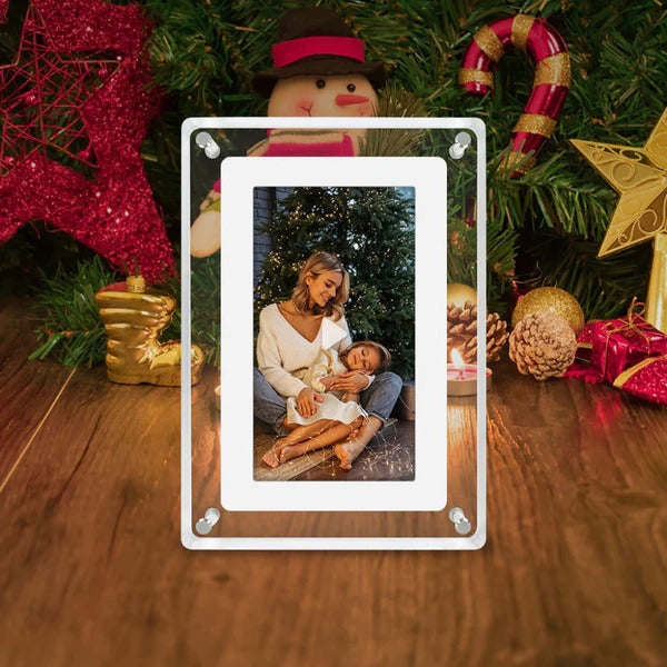 Spiele deine auf Video festgehaltenen Erinnerungen in einem wunderschönen Acrylrahmen immer wieder ab. Schließe Sie ihn einfach an deinen Computer an und lade deine besten Fotos/Videos darauf!